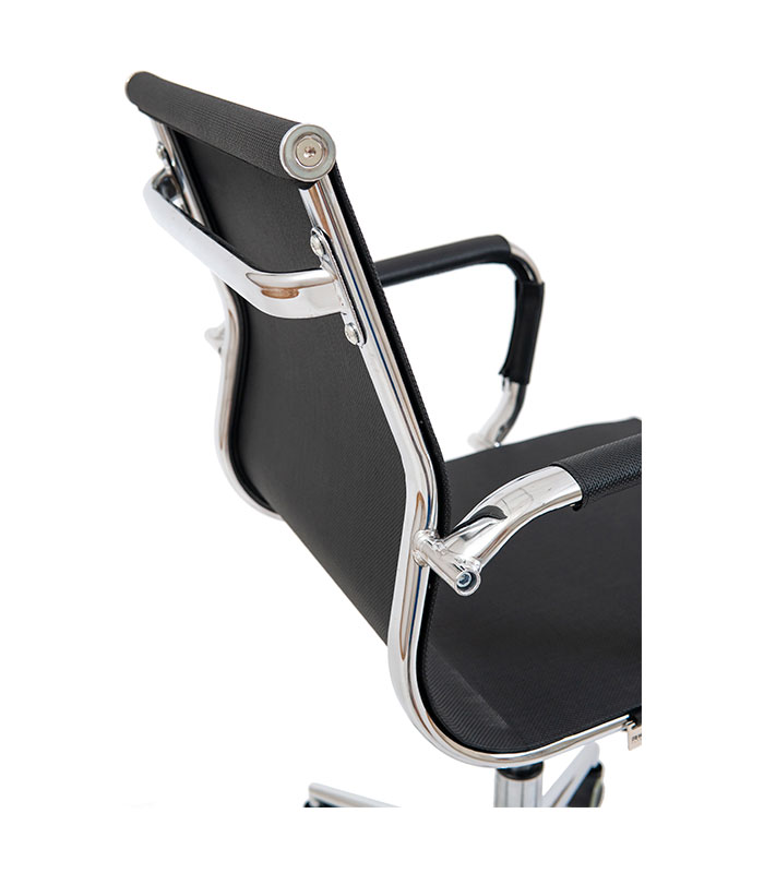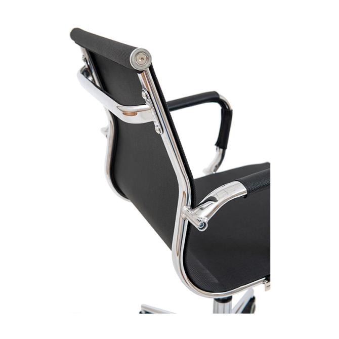 Поверхня спинки має плавні вигини що сприятиме правильному положенні спини. Оббивка з еластичної та зносостійкої сітчастої тканини дозволяє максимально комфортно розташовуватися в кріслі, не втомлюючись від тривалого перебування в ньому.