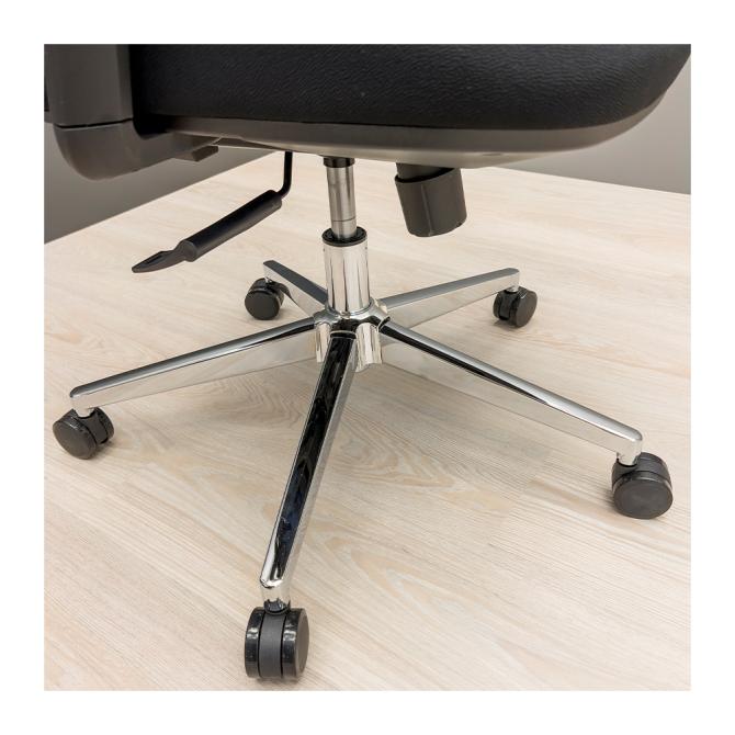 Сучасний механізм Syncro забезпечує плавне нахилення спинки та сидіння зі співвідношенням 2:1, створюючи додаткові умови для релаксації та зосередженої роботи. Металева хрестовина з хромованим покриттям не лише додає естетичного вигляду крісла, але й гарантує його стійкість та довговічність. Прогумовані ролики забезпечують легке та безшумне переміщення крісла, не залишаючи слідів на підлозі.