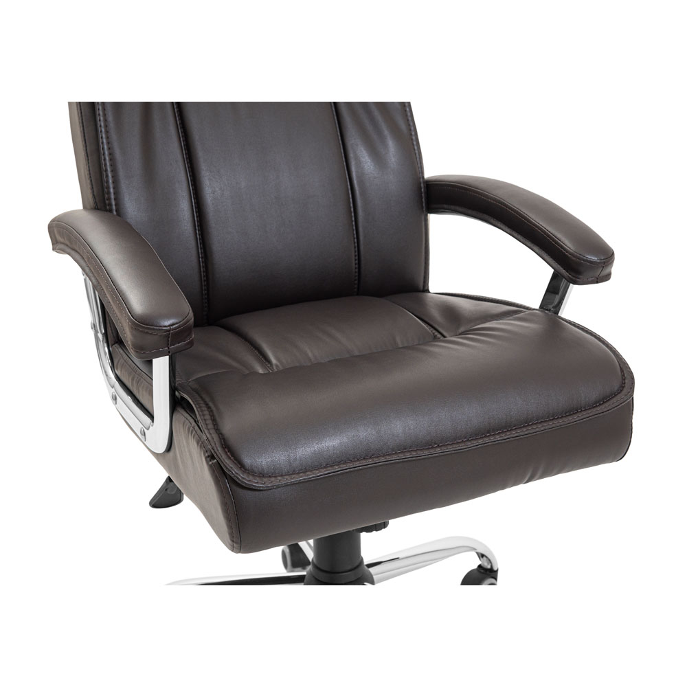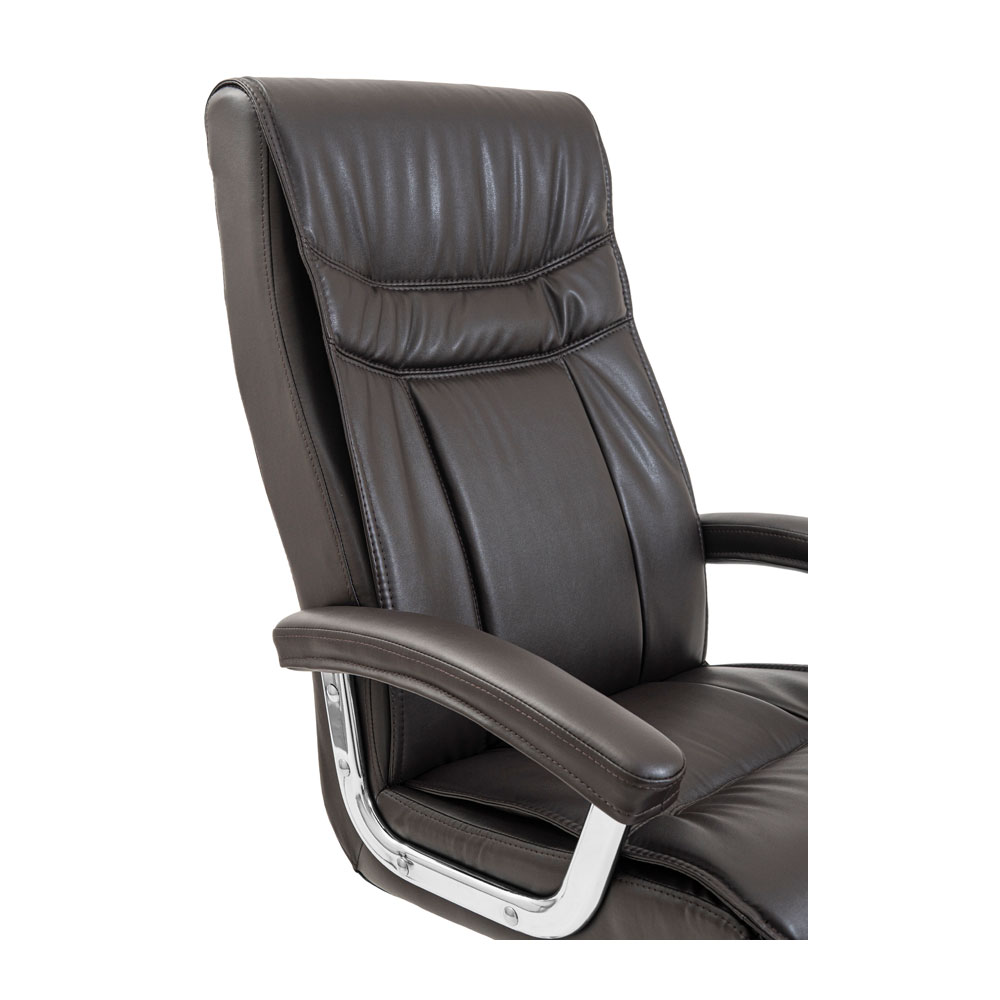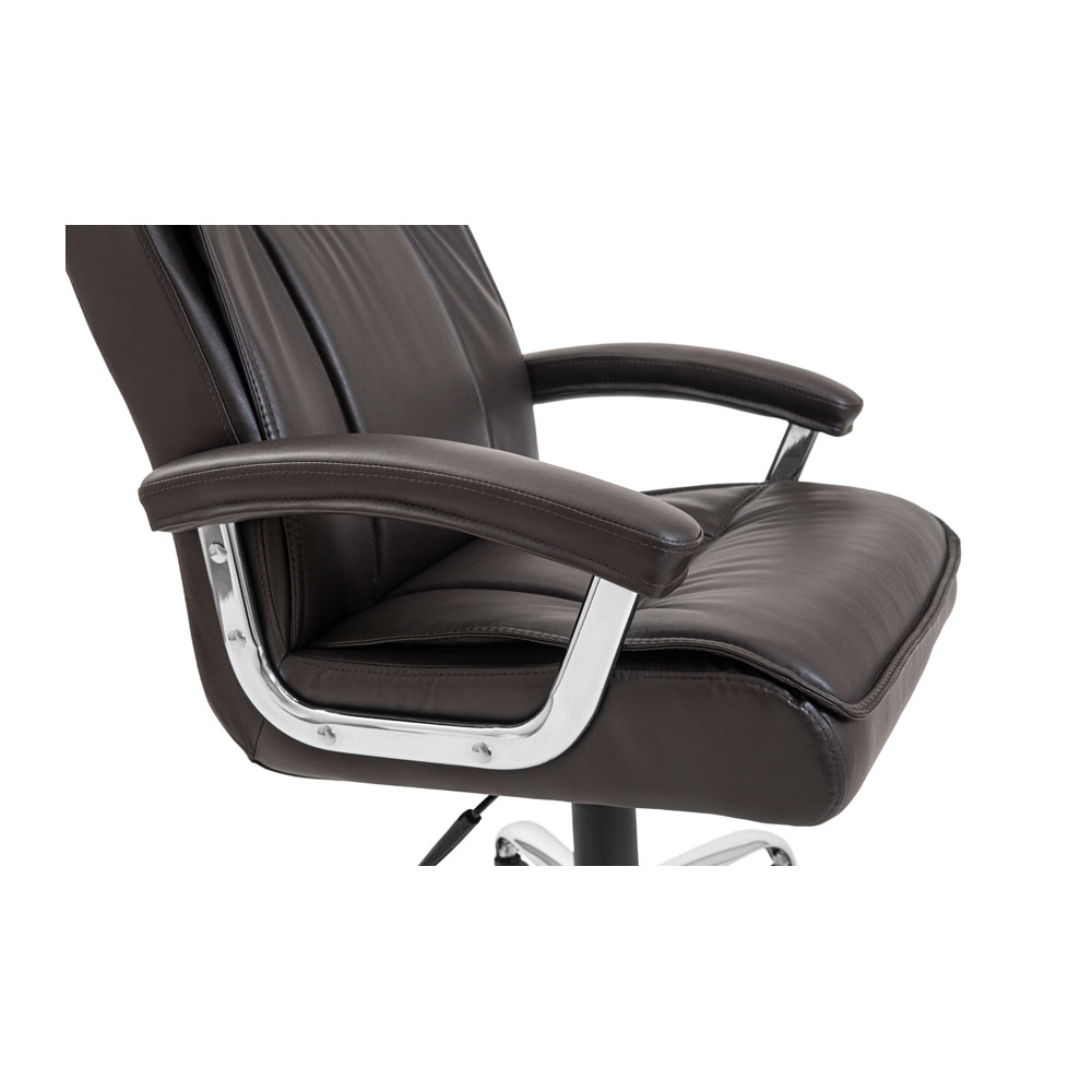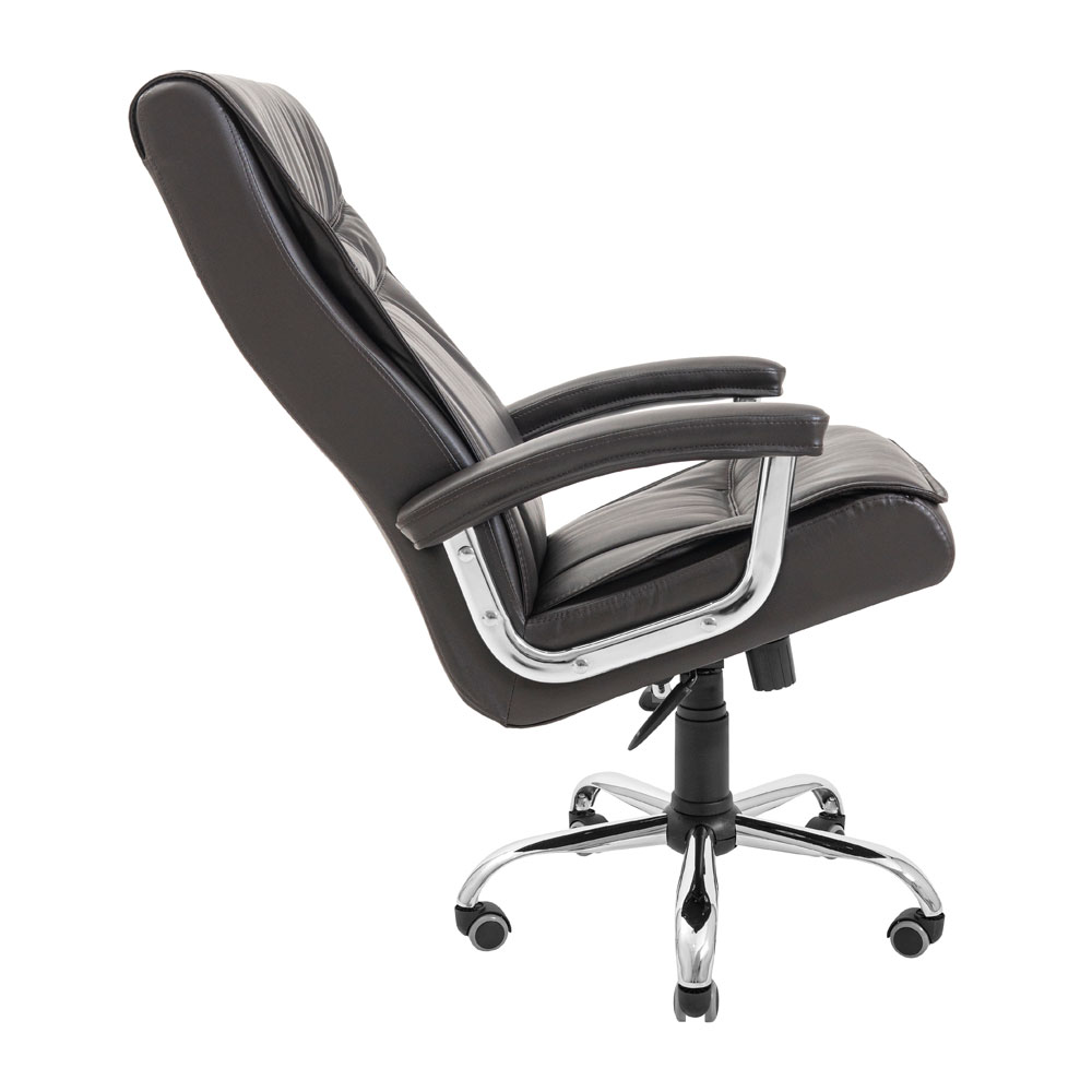 Хромовані підлокітники виглядають елегантно і мають м’які подушки, що дозволяє зручно спертися на них у будь-якому положенні та комфортно розмістити руки під час відпочинку. Крісло має міцну хрестовину з хромованого металу товщиною 1,4 мм, яка оснащена обгумованими роликами для безшумного та безпечного пересування по різних поверхнях, не боячись їх пошкодити.