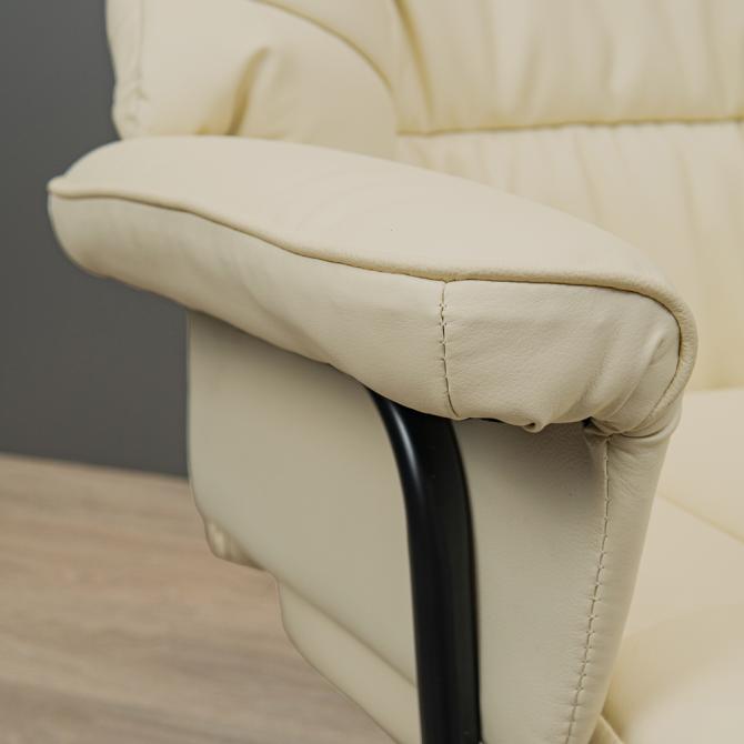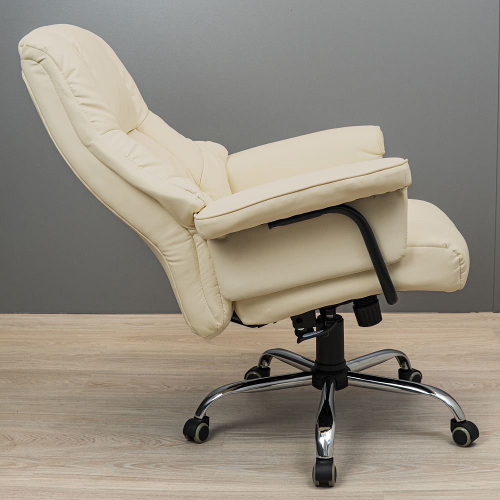 Крісло Richman Конгрес Хром – це презентабельна та ергономічна модель, ідеальна для кабінету керівника. Високоякісна бежева екошкіра, розкішний дизайн та великі м’які підлокітники підкреслюють статус і смак власника. Крісло оснащене посиленим механізмом гойдання М2 з кутом нахилу до 135 градусів, що забезпечує комфорт протягом робочого дня. Міцна хромована хрестовина з гумовими роликами дозволяє безшумно пересувати крісло, не пошкоджуючи підлогу.