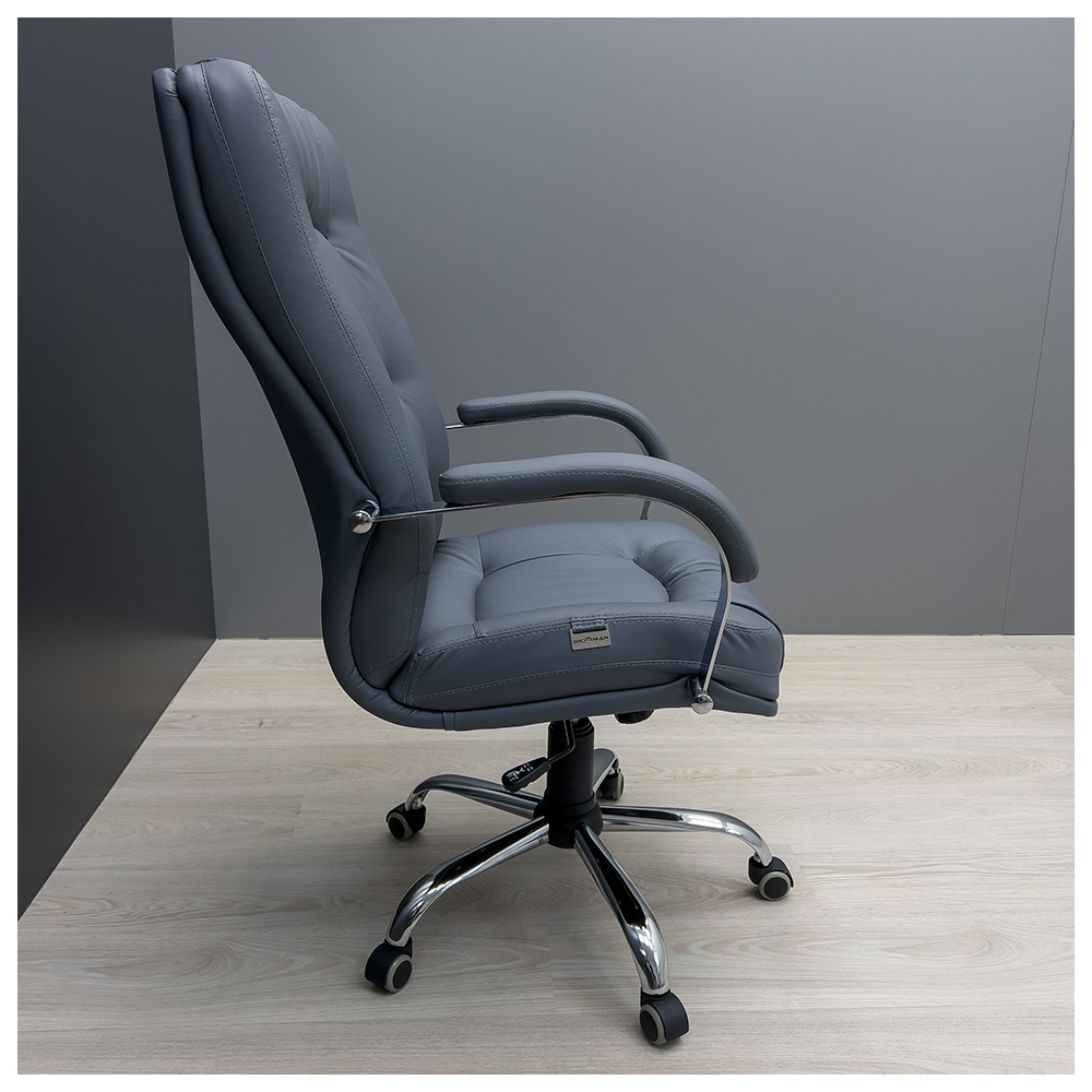 Крісло Richman Альберто Хром поєднує сучасний стиль з функціональністю, ідеально підходячи для будь-якого офісу або кабінету. Ергономічне сидіння і висока спинка забезпечують комфорт під час тривалої роботи, а оббивка з екошкіри або тканини дозволяє вибрати найбільш підходящий варіант. Металеві хромовані підлокітники з вигнутою формою додають зручності, а хромована хрестовина з прогумованими роликами забезпечує безшумний та безпечний рух.