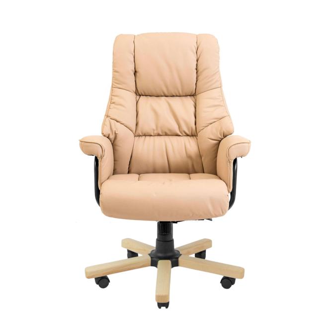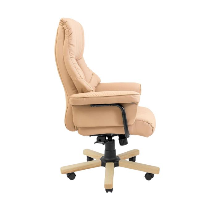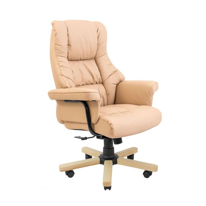Модель крісла Richman Конгрес Вуд є втіленням розкішного дизайну і монументальності, що створена спеціально для облаштування офісу керівника. Це не просто крісло, а витончений висловлювач особистого смаку та статусу свого власника, завдяки його високій якості, матеріалам, що використовуються, та ергономічному дизайну спинки. Крісло має покриття з високоякісної екошкіри ніжного бежевого відтінку, а широкі і м’які підлокітники додають комфорту, незалежно від положення тіла, та зручно розташовують руки в процесі відпочинку. Окрім комфортного сидіння, ця модель включає в себе посилений механізм M-2 Широкий (Anyfix Wide) для гойдання, який дозволяє нахилити спинку до 135 градусів і фіксує її в потрібному положенні. Товста металева хрестовина, прикрашена дерев’яними елементами, що надають кріслу вигляду розкоші та заможності. Зауважте, що крісло постачається в розібраному вигляді. У комплект постачання входить усе необхідне для збірки, яка не займає багато часу.