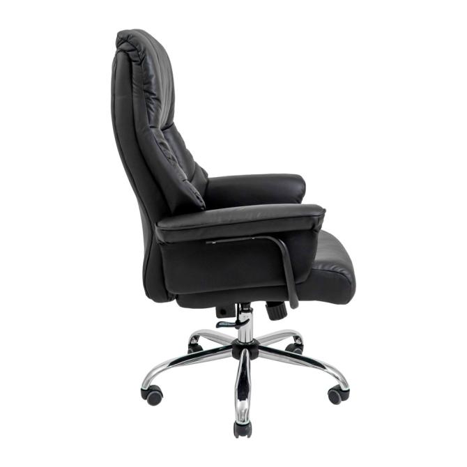 Це крісло покрите преміальною шкірою Люкс класичного чорного кольору. Великі, м’які підлокітники забезпечують комфортне спирання у будь-якому положенні і зручне розміщення рук під час відпочинку.