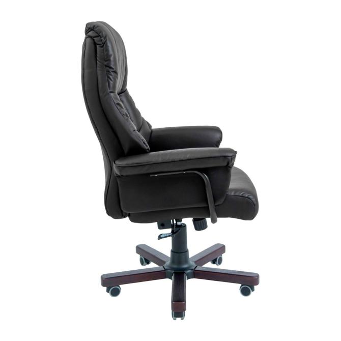 Крісло Richman Конгрес Вуд - символ розкішного та монументального дизайну, призначене для офісу керівника, що відображає особистий статус та смак власника за рахунок вишуканої якості та ергономічності. Воно виготовлене з преміальної шкіри Люкс коричневого кольору та має широкі м'які підлокітники для максимального комфорту. Механізм гойдання M-2 Широкий дозволяє нахилити спинку до 135 градусів і фіксує її в зручному положенні, а вигадливо прикрашена товста металева хрестовина з дерев'яними деталями додає кріслу вишуканості та розкоші.