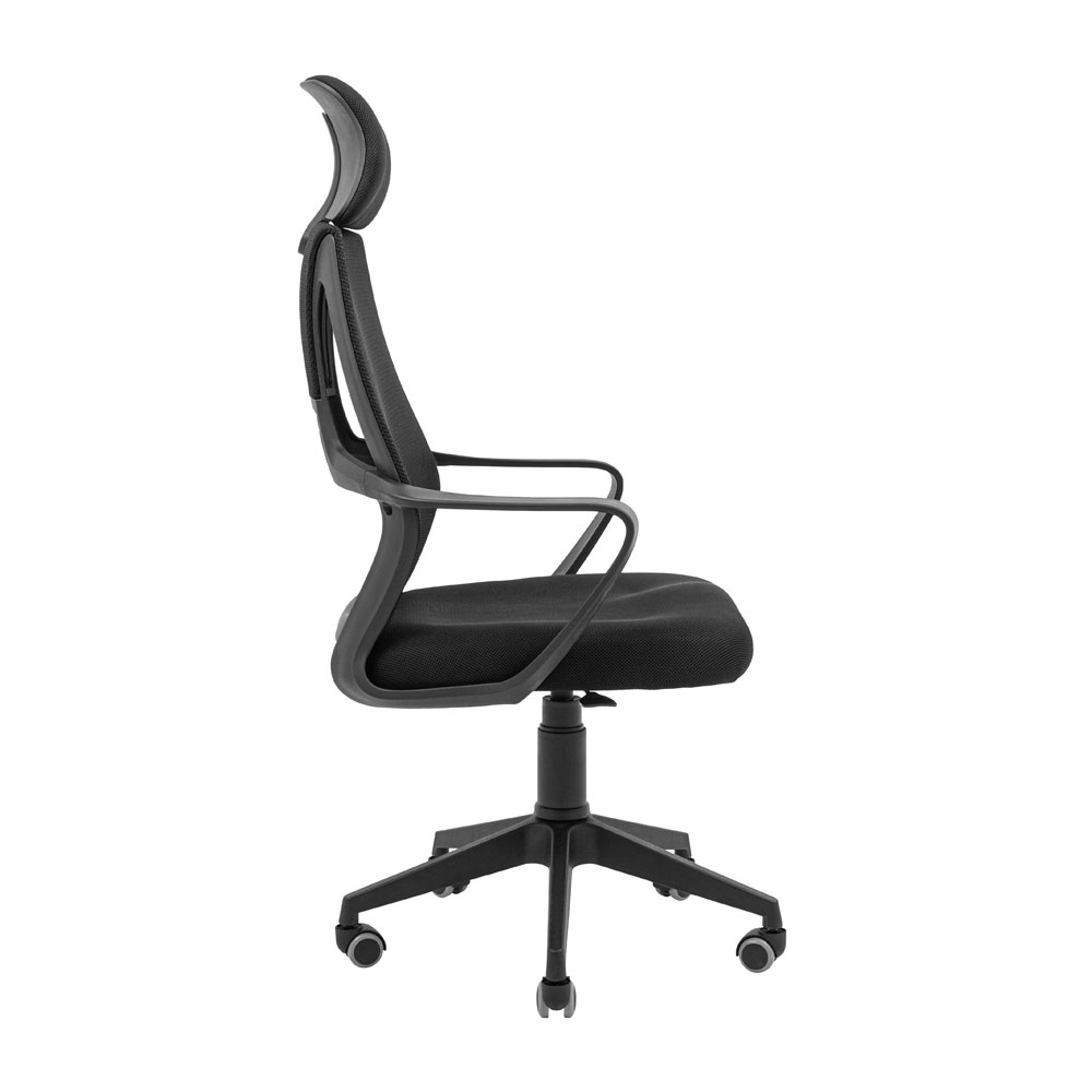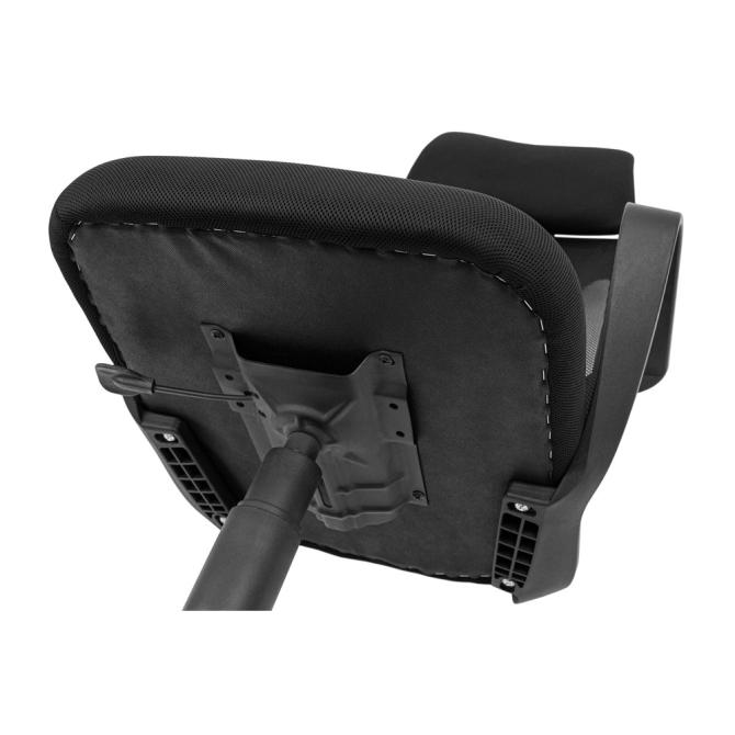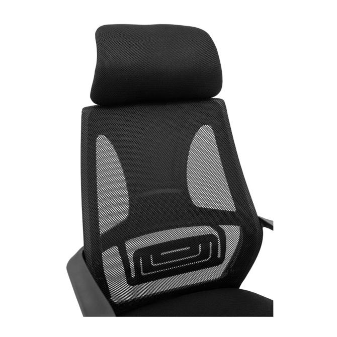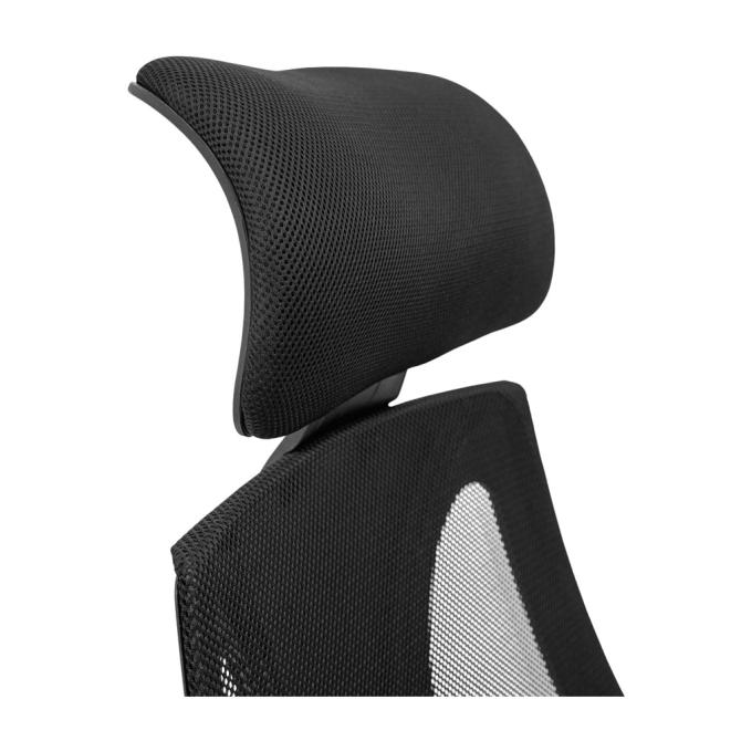 Спинка крісла обтягнута кольоровою нейлоновою сіткою — еластичним та зносостійким матеріалом, у яку інтегрована поперекова підтримка. Також комфорту спинці додає зручний, м’який підголівник, який регулюється за висотою та обтягнутий сітчастою повітропроникною тканиною.