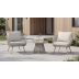 Сидіння оснащені подушками з тканини Olifen — сучасного поліолефінового матеріалу, розробленого спеціально для вуличних меблів. Матеріал не вигорає на сонці, швидко висихає, не вбирає вологу та простий у догляді, що забезпечує комфорт і практичність у щоденному використанні.