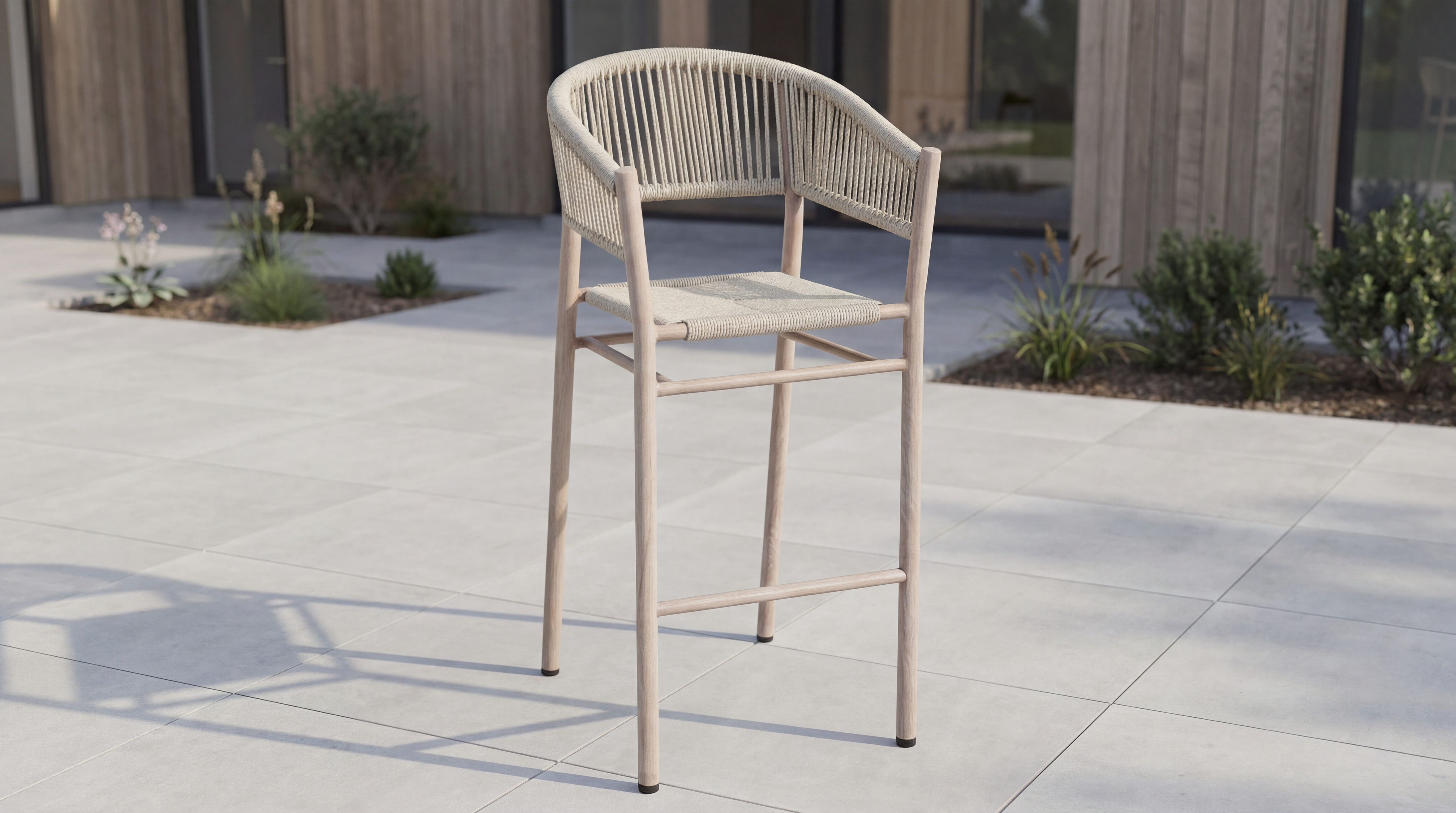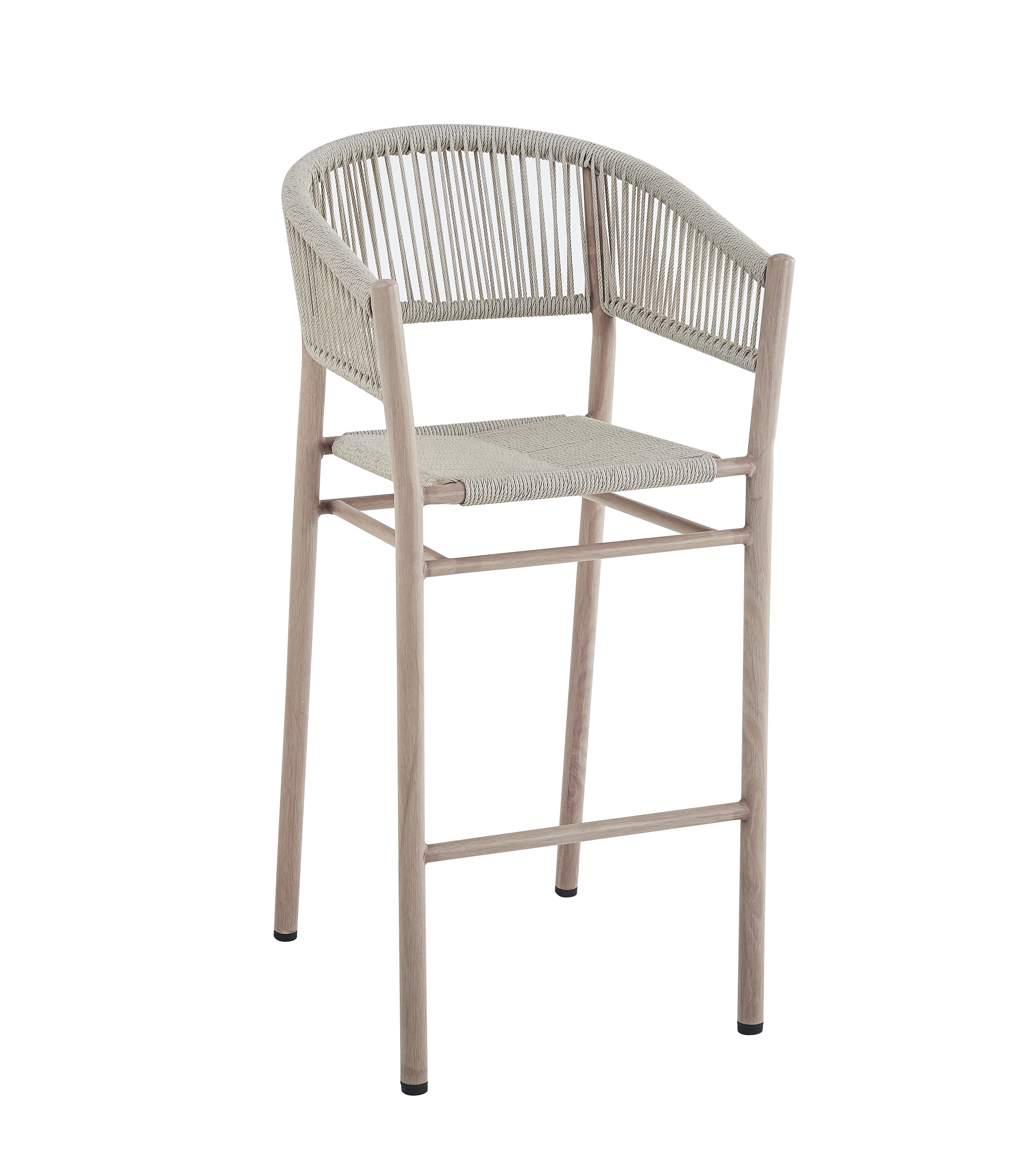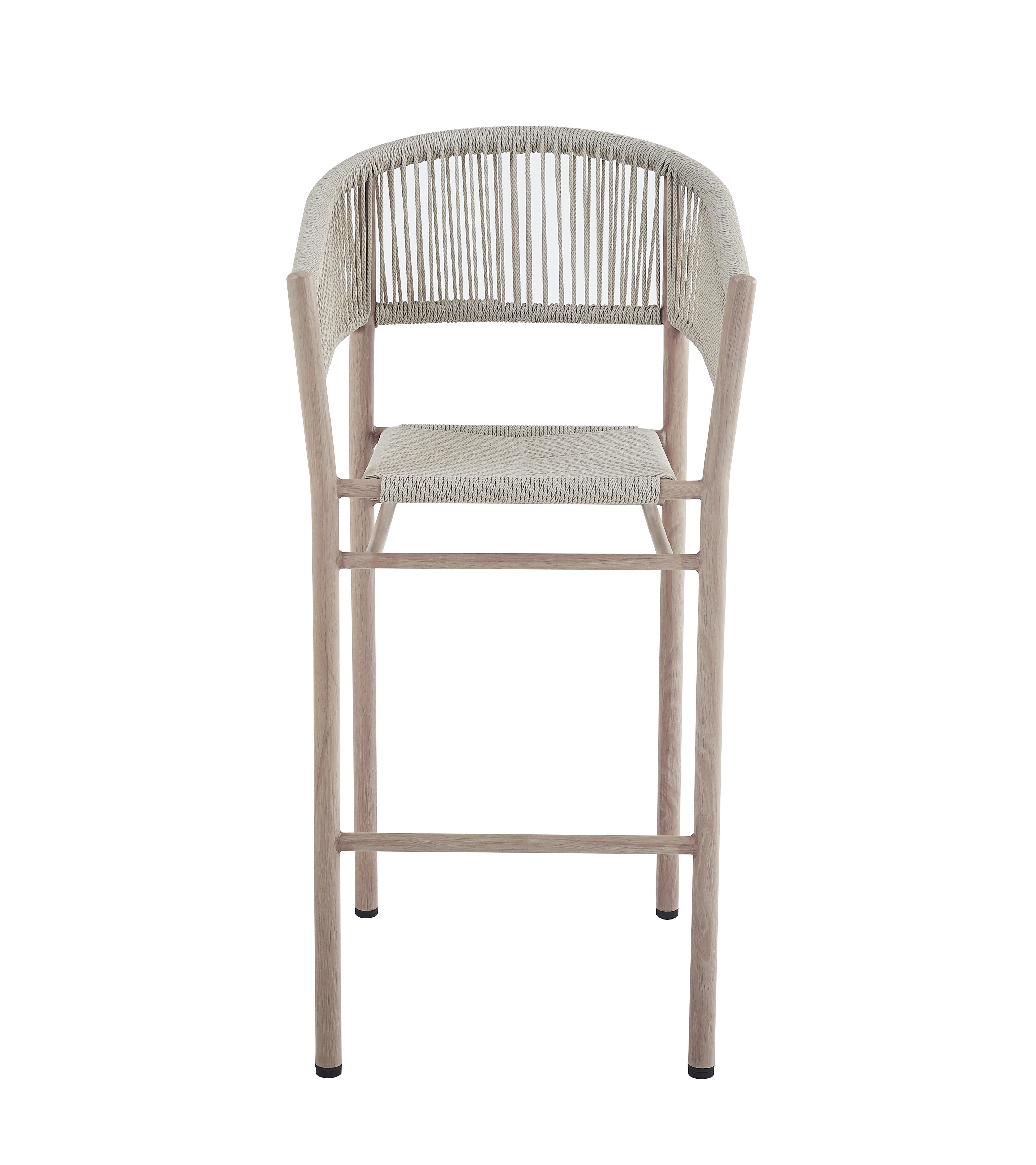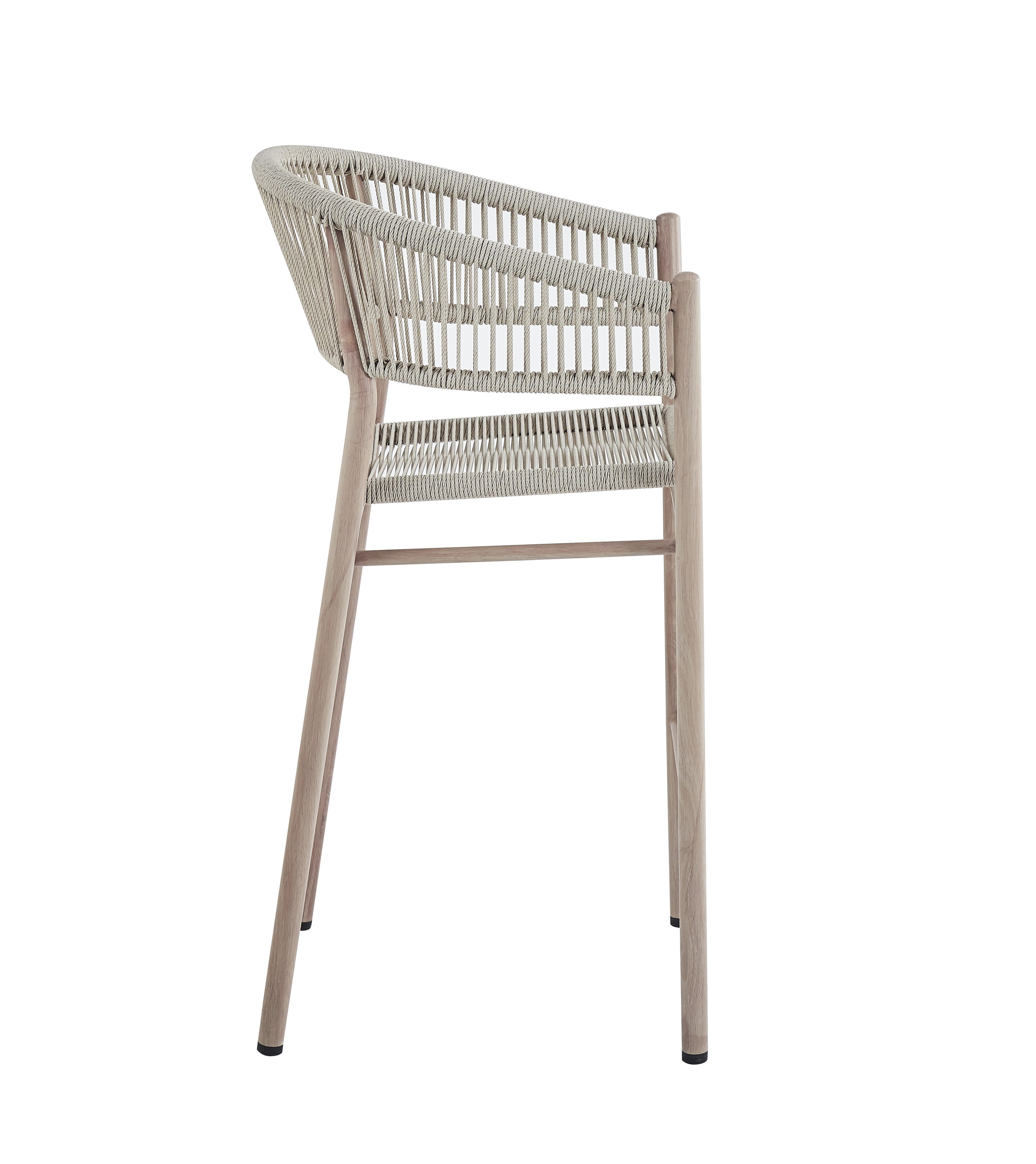 Каркас стільця виготовлений з оцинкованої сталі з декоративним покриттям під дерево у поєднанні зі штучним ротангом. Така конструкція забезпечує високу міцність, стійкість до корозії та довговічність, а також добре витримує вплив вологи, сонця і температурних перепадів, що робить модель ідеальною для використання на відкритому повітрі.