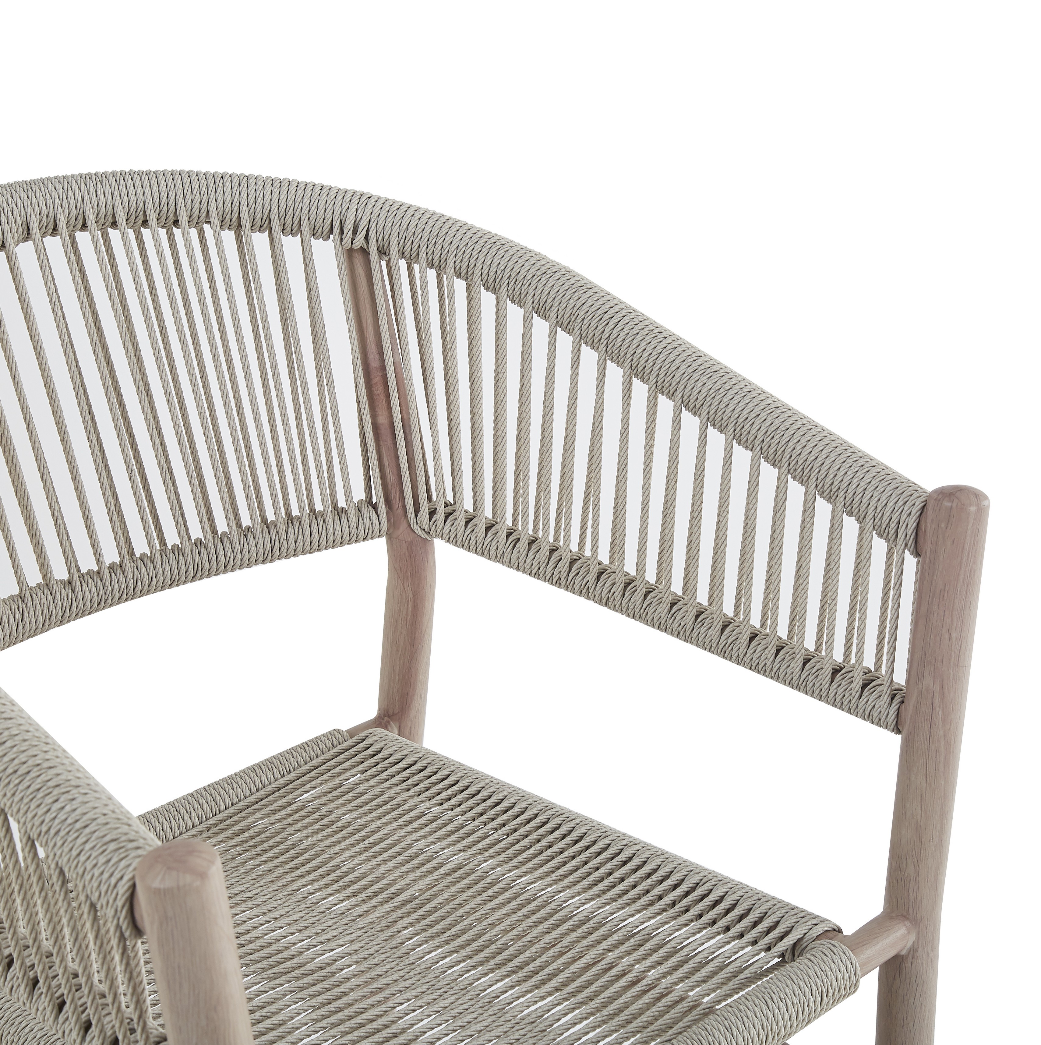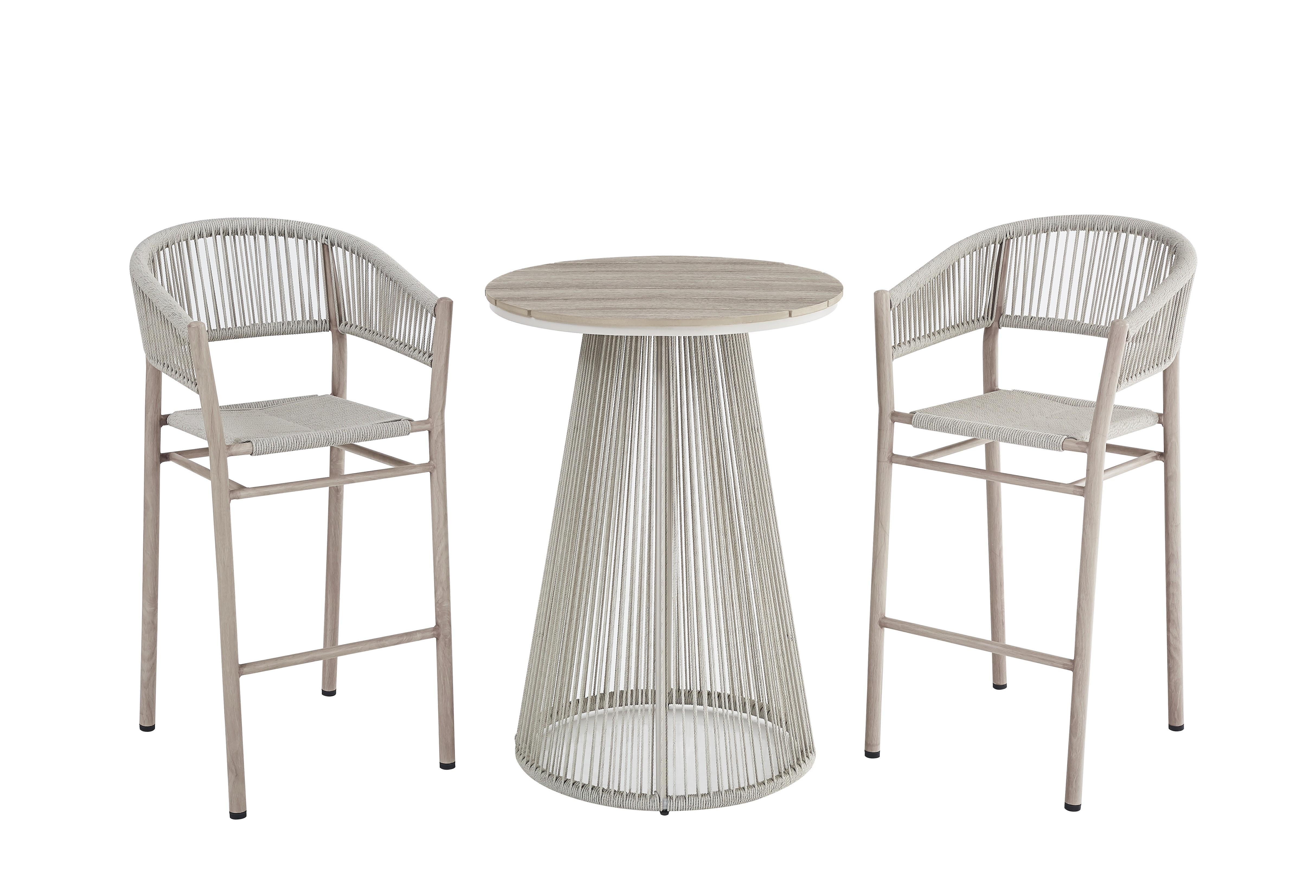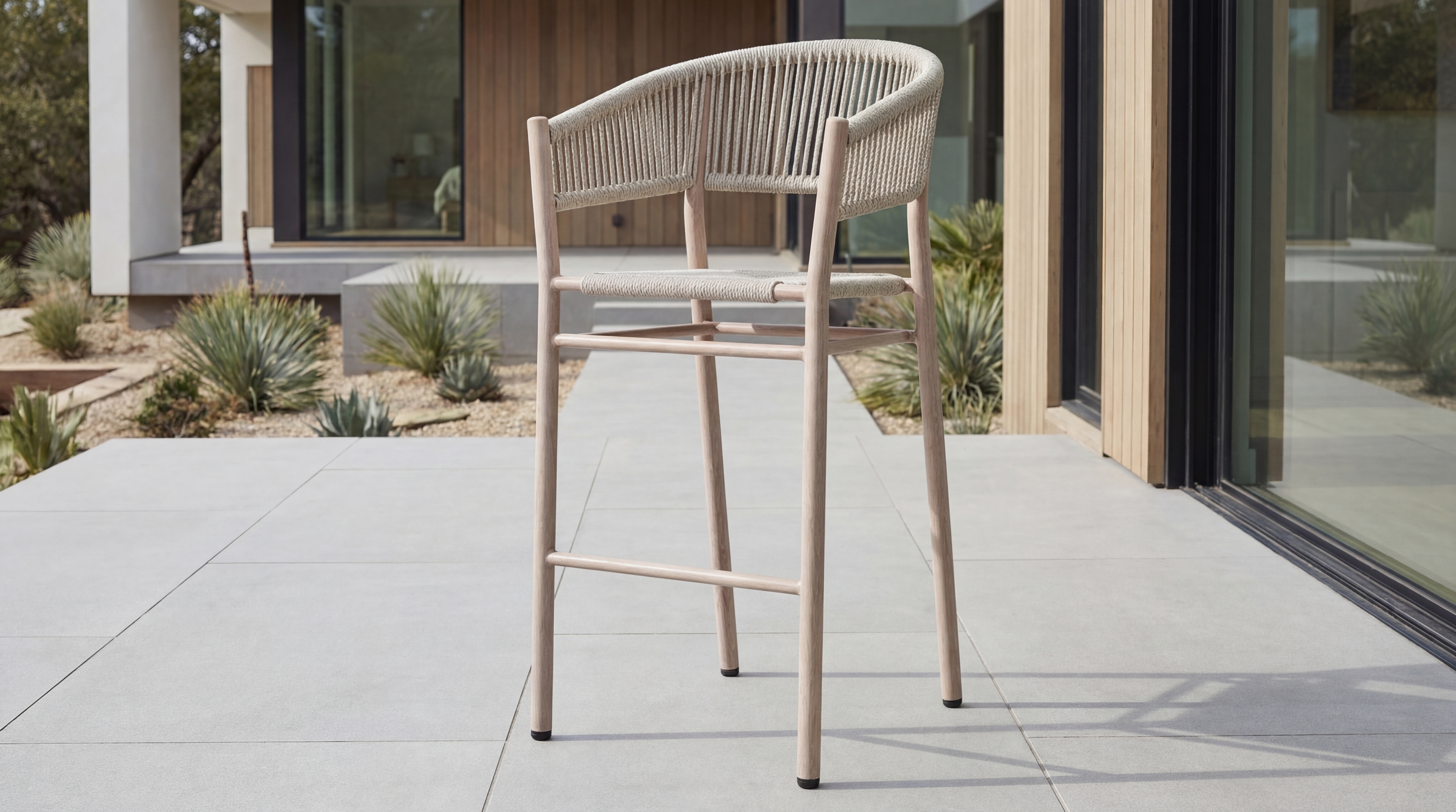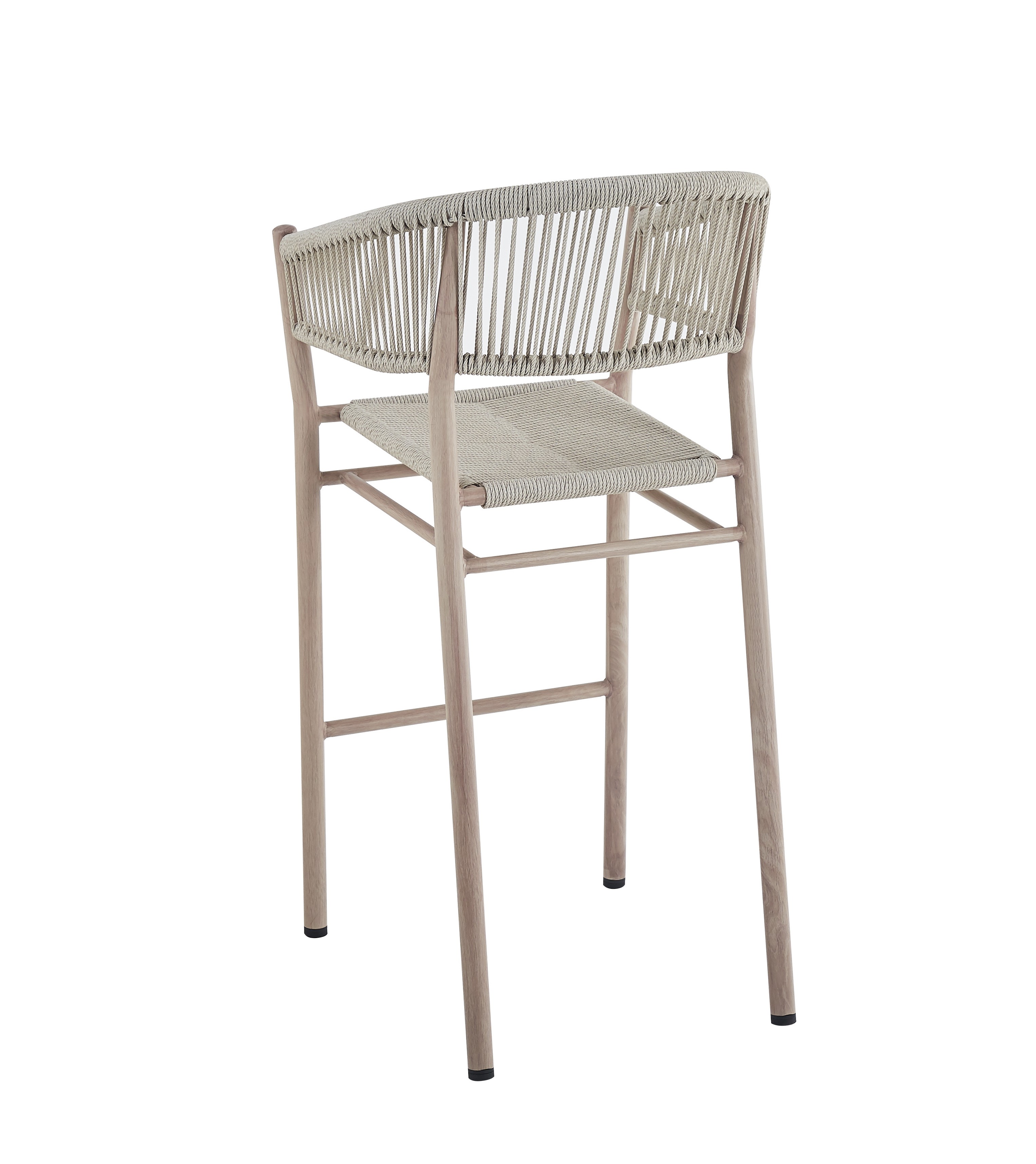 Каркас стільця виготовлений з оцинкованої сталі з декоративним покриттям під дерево у поєднанні зі штучним ротангом. Така конструкція забезпечує високу міцність, стійкість до корозії та довговічність, а також добре витримує вплив вологи, сонця і температурних перепадів, що робить модель ідеальною для використання на відкритому повітрі.